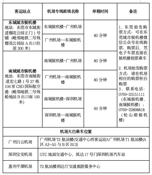 购票方式:东莞始发方向支持线上购票,具体购票攻略、发班时间可搜索“东莞城市候机楼公众号”查看。